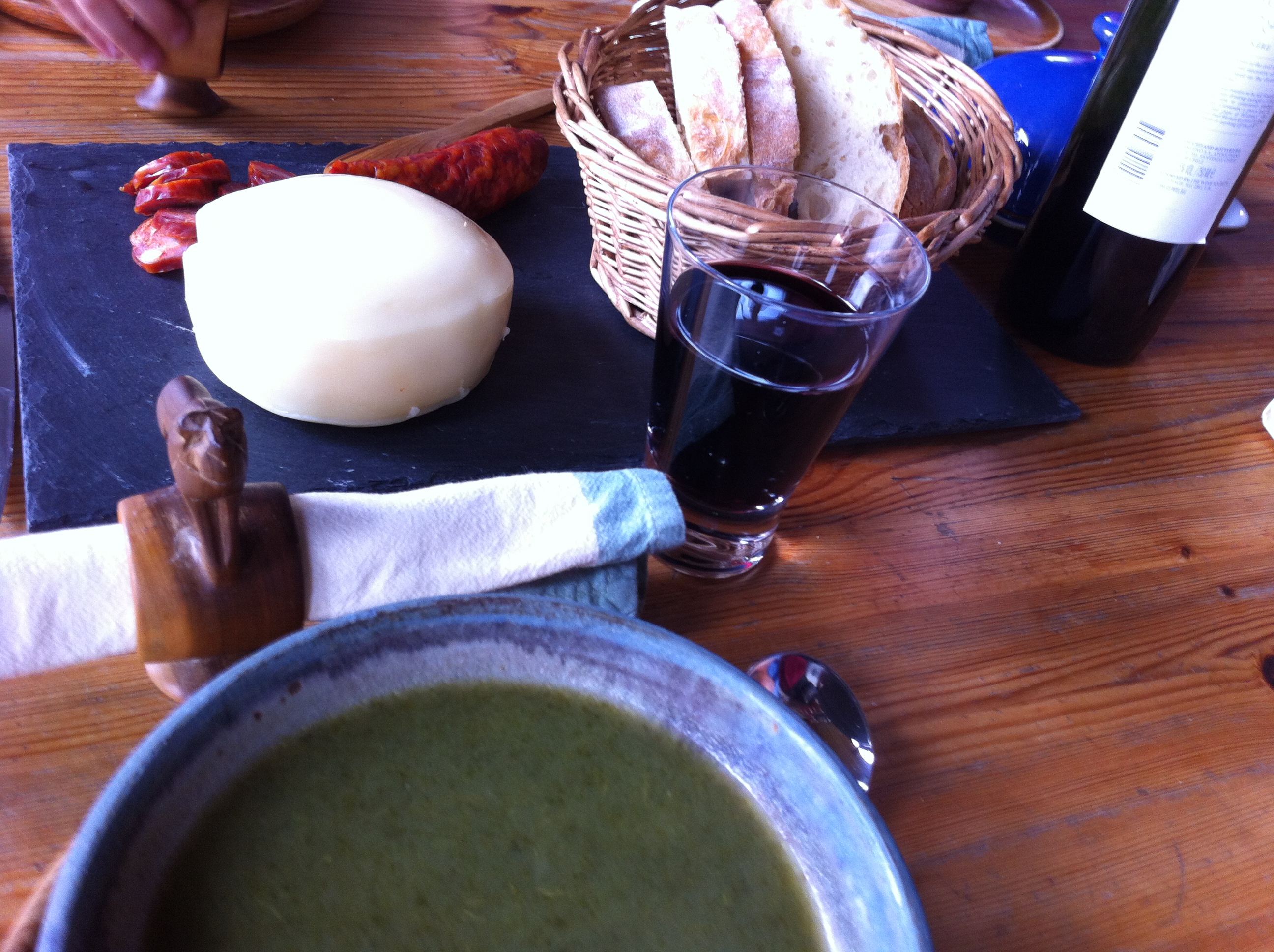 For our Portuguese World Cup meal, we had caldo verde. I served it with some Ponte Nova cheese, chourico (Portuguese chorizo), Portuguese bread and pastéis de nata for dessert.