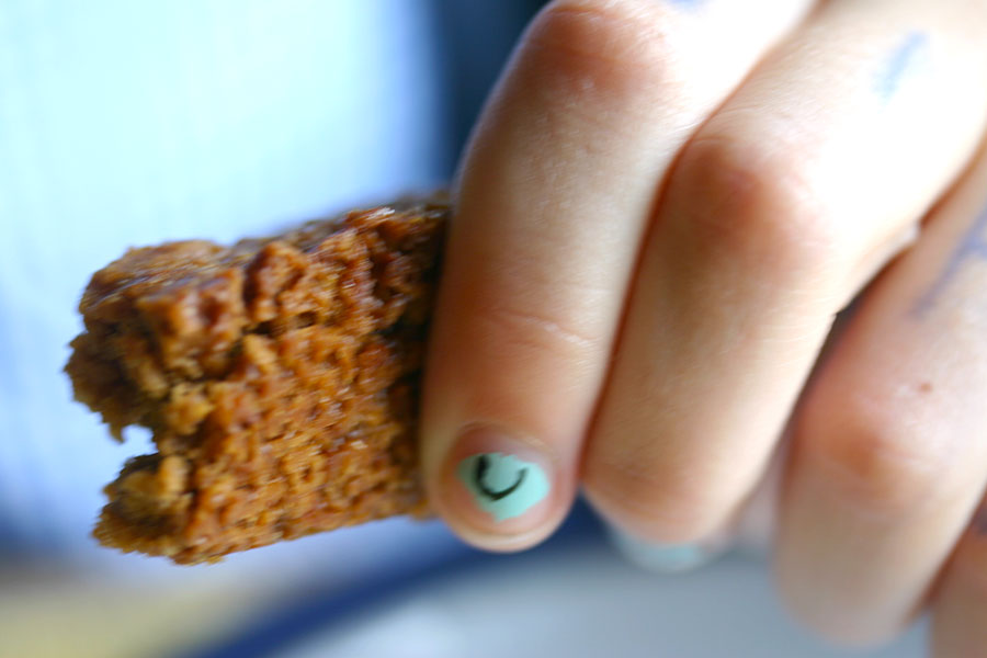 At first I was taken aback by the amount of butter and syrup most flapjack recipes call for. But after experimenting with various healthier recipes (including one that involved mashed banana), I’ve settled on this lemon and ginger version. I just cut them into smaller pieces.