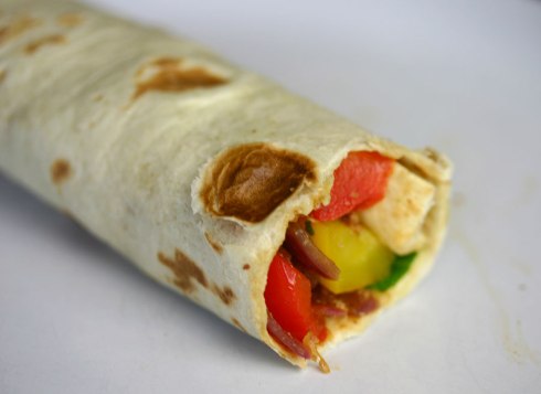 Whatever you put in your fajita, arrange the filling in a strip down the middle of the tortilla, fold the bottom inch of tortilla over the top, then fold over one of the sides and roll.