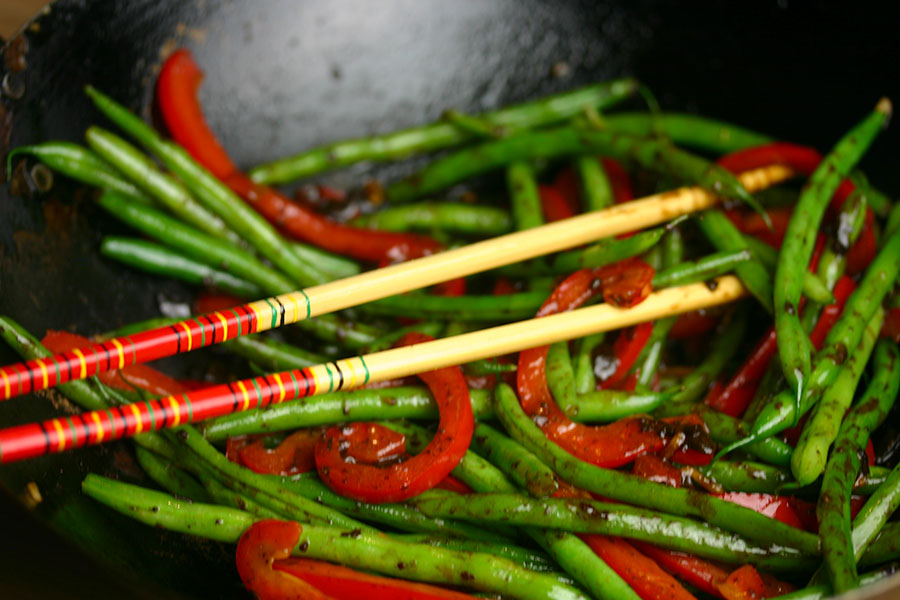 To make kung pao chicken the whole family can enjoy, I use a few dried chillies for base heat when cooking, remove the girls’ portions, then stir through additional fresh chillies for the grown-ups.
