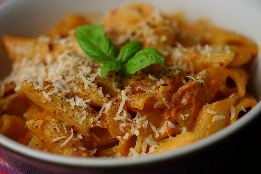 Pasta amatriciana is a classic Roman dish made with guanciale (cured pork cheek), tomatoes and chilli. Traditionally made with bucatini, I prefer it with penne and seldom use another pasta.