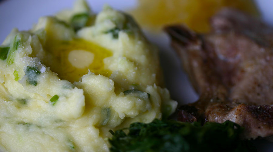 Champ – mashed potatoes with spring onions – is the most comforting of comfort foods. Apparently, it’s still sometimes served as a main dish in Northern Ireland, which would work for me…