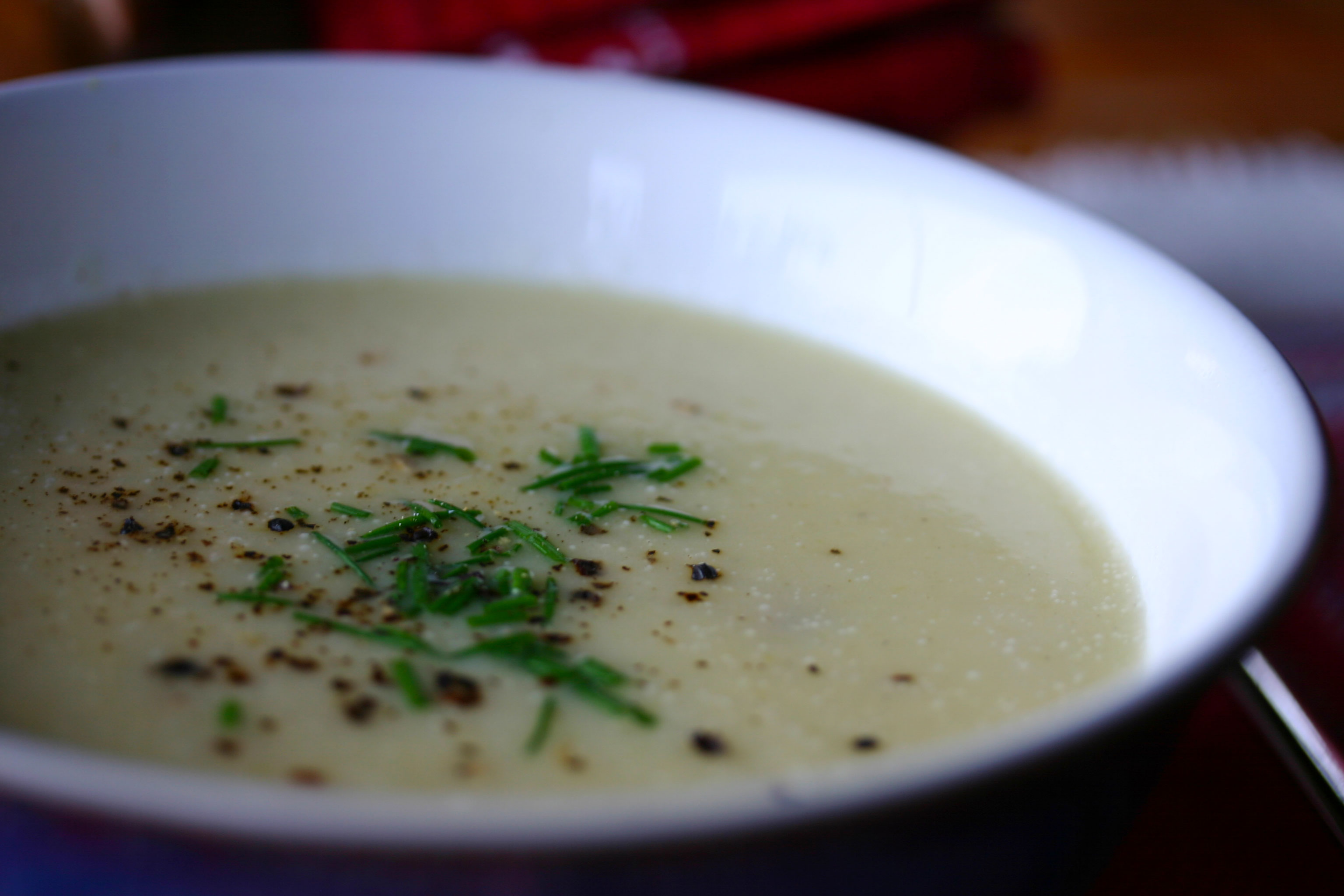 I ate a lot of soup as a university student – particularly onion potato soup. This was mostly because it cost about $1 to make an enormous pot that I could live off for days. This leek and potato soup is pretty much the same soup, all grown up – just like me…